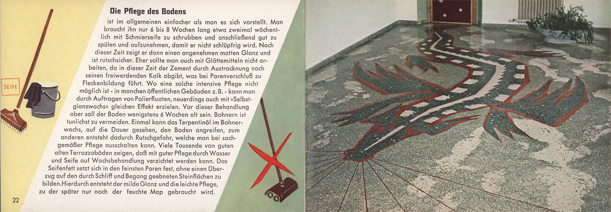 werkskunst sowie über die richtige Pflege von Terrazzoböden, indem Sie zum Vergrößern auf die Bilder klicken.